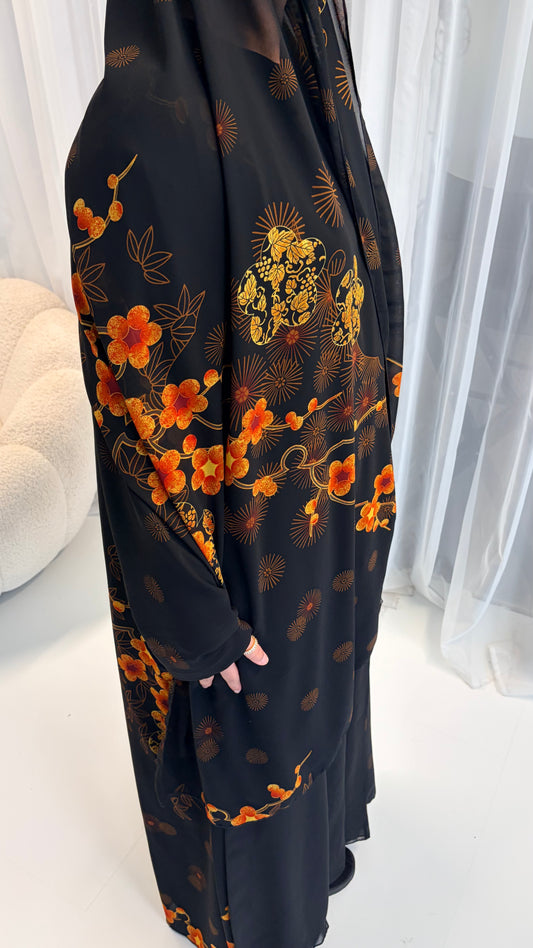 Midnight Marigold Chiffon Abaya
